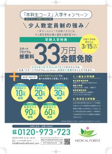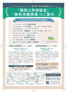 メディカルフォレストでは現在「個別入学相談会」「無料体験授業」を実施しております。